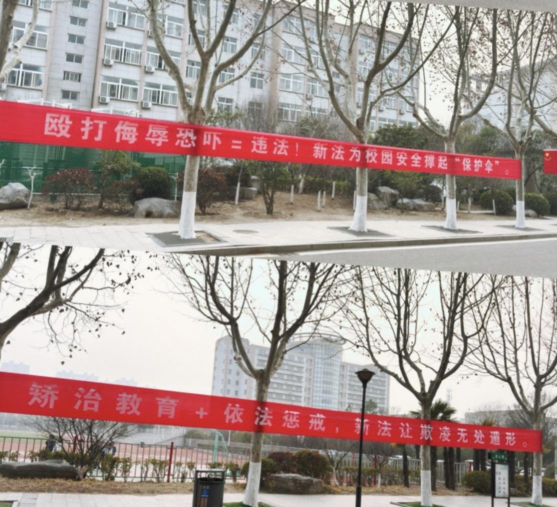 为贯彻落实新修订的《中华人民共和国治安管理处罚法》,我校保卫处即日起在校园重点区域悬挂主题宣传横幅,并同步开通24小时反霸凌线上举报平台,以法治力量筑牢校园安全防线。